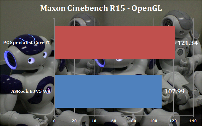 The Maxon Cinebench R15 OpenGL test is a little sensitive to CPU clock speed than most professional graphics tests, so our ASRock setup has fallen a little behind here.
