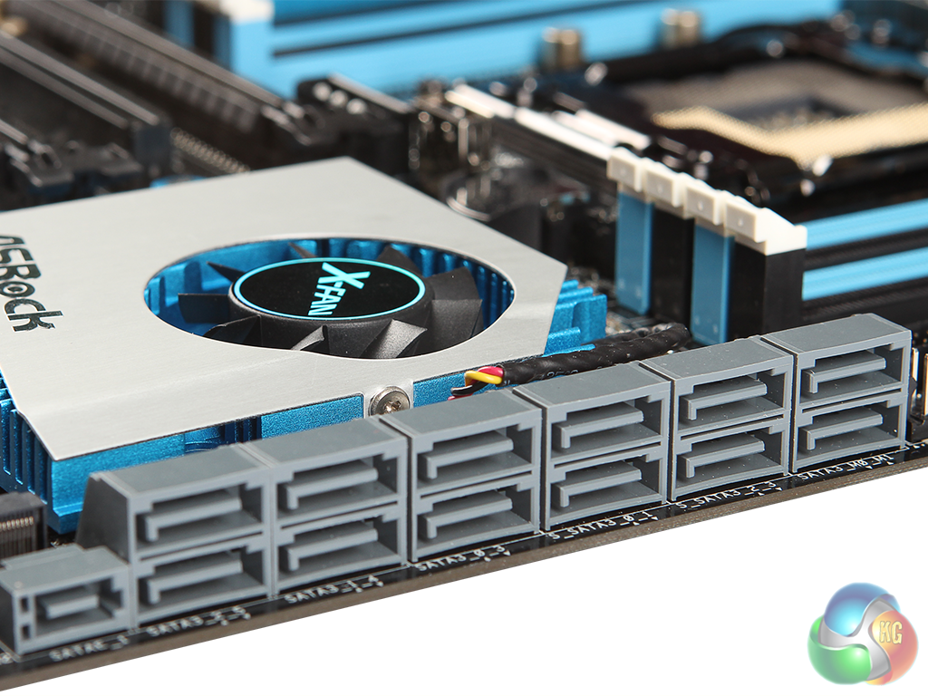 Nearby are headers for four more USB 3 ports, plus headers for four more USB 2 ports.