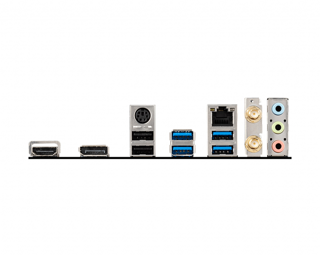 Featuring 4x DIMM slots for up to 128GB of DDR4 at a maximum speed of 4400MHz, this board has a PCIe 3.0 x16 slot, 2x PCIe 3.0 x1 slots, an M.2 slot, 4x SATA 6Gbps ports, Realtek ALC897 audio Codec, Realtek RTL8111H LAN controller, and Intel Dual Band Wireless-AC 3168 with Bluetooth support. The board's rear I/O comes with 4x USB-A 3.2 Gen1 5Gbps ports, 2x USB-A 2.0 ports, an RJ-45 ethernet port, audio and WiFi antenna connectors (antennas included), an HDMI 2.1 port, and a DisplayPort.