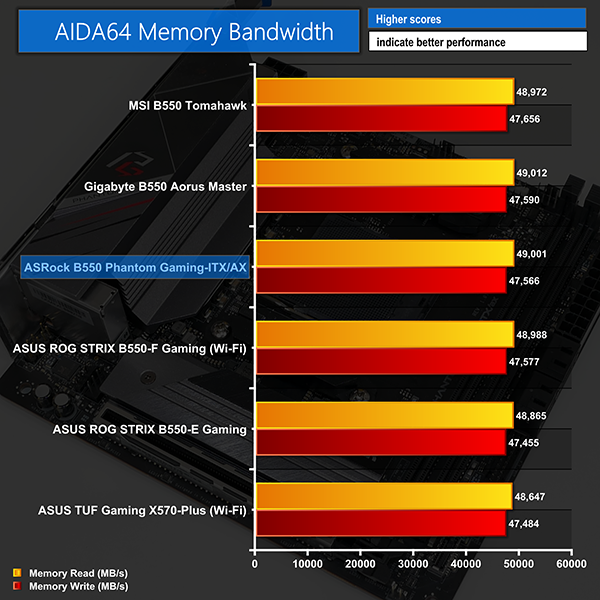 No problems at all with the memory results. Both the bandwidth scores and latency numbers are comparable to alternative B550 competitors.