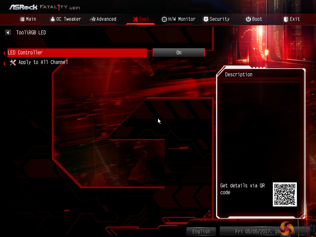 ASRock’s UEFI-based RGB LED tool is almost pointless. It does little more than turn the LED controller on or off. It does not offer any form of RGB LED control, which is disappointing.