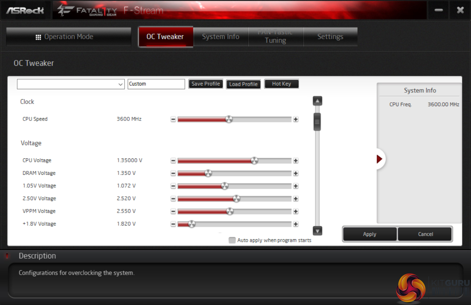 F-Stream, as it is referred to on Fatal1ty motherboards (A-Tuning for other product lines), is ASRock’s equivalent to ASUS AI Suite, Gigabyte EasyTune, and MSI Command Centre. This software allows you to overclock on the fly (OTF) and tune the fan speeds in real time with the ASRock Fan-Tastic tuning utility. It’s a reasonably well-polished piece of software, is light on system resources, and not very intrusive.