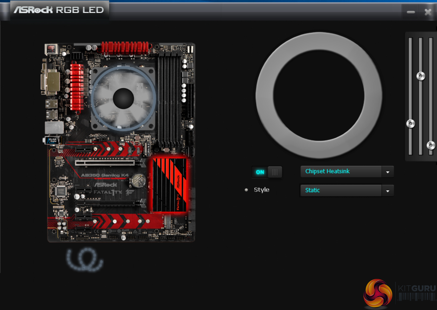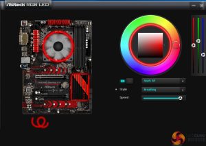 Users wanting to adjust colours of LEDs on the motherboard and those connected via the strip headers will need to install ASRock RGB LED. The software tool provides colour control in a very annoying wheel and square mechanism that overcomplicates an otherwise simple procedure.