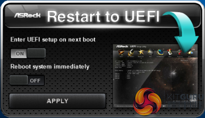 Restart to UEFI gives a user the option to easily get into the UEFI without hoping for a slow POST and Windows boot. This is convenient for times when you want to simply enter the UEFI to quickly change settings.