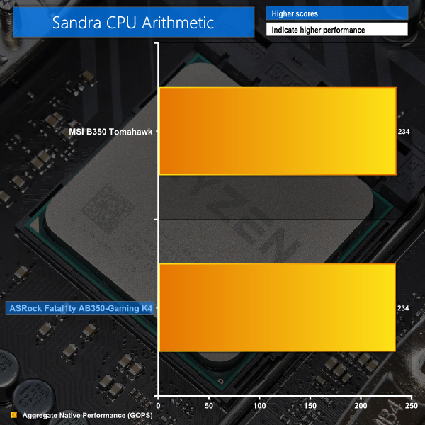 SiSoft Sandra is a multi-function utility program that supports remote analysis, benchmarking and diagnostic features for PCs, servers, mobile devices and networks. We run the application’s processor arithmetic test to gauge the CPU performance on each tested motherboard.