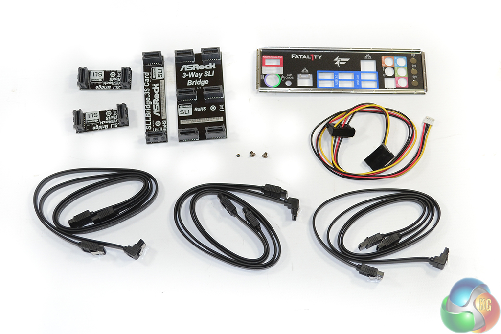 Given the board’s premium pricing, it comes as no surprise to see a healthy accessory bundle. The supplied cables are formed of six for SATA data and one for ASRock’s HDD Saver power connector. I would like to see the HDD Saver cable coloured purely black at some point in the near future – multi-coloured cables are ugly.