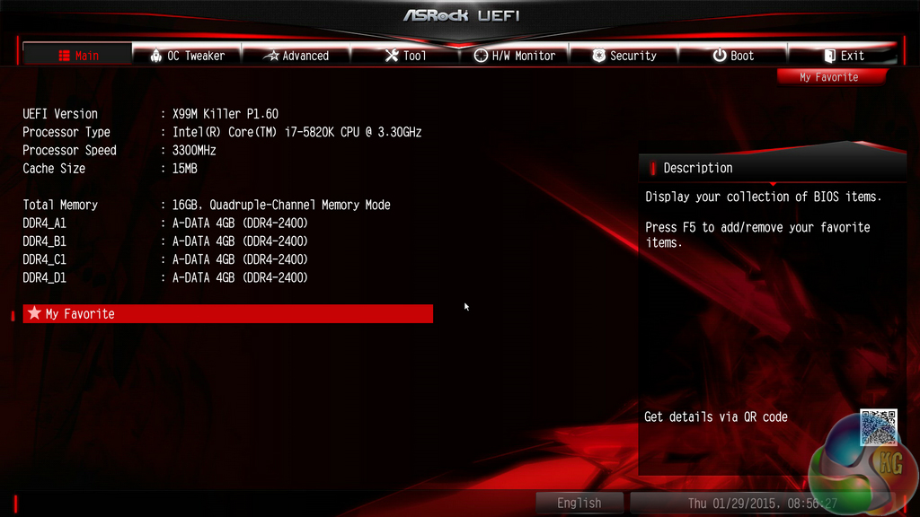 ASRock's X99 UEFI is consistent across its motherboard line-up (hence our screenshots being taken from a previous review). There are subtle differences between the versions, the most notable of which is a different background colour depending on the motherboard's series. The interface uses a 1920×1080 display resolution.