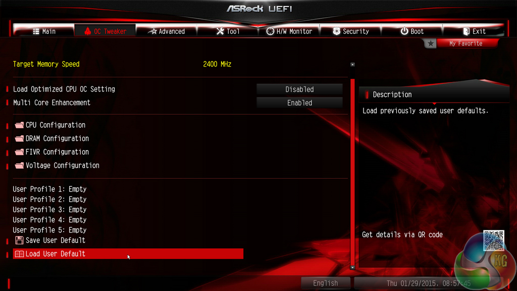 Up to five customised user profiles can be saved to the board's internal memory. I feel that five profiles is sufficient for a motherboard that is not intended for competitive overclocking. A USB flash drive can be used to transfer profiles to and from the board.