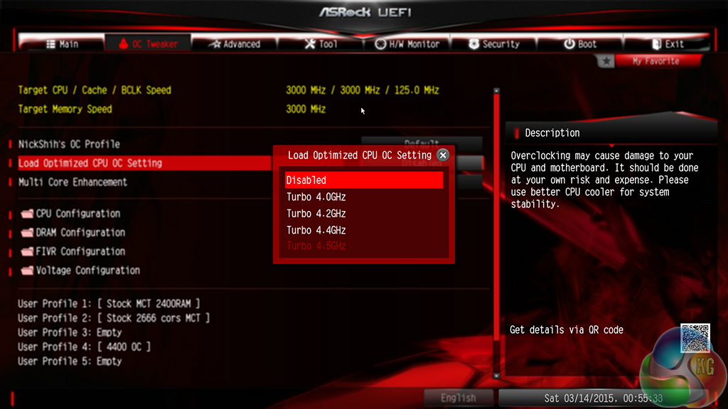 Overclocking profiles designed by one of the world-leading professional overclockers – Nick Shih – can be loaded from the UEFI. There are also some less extreme overclocking profiles set by ASRock’s engineers.