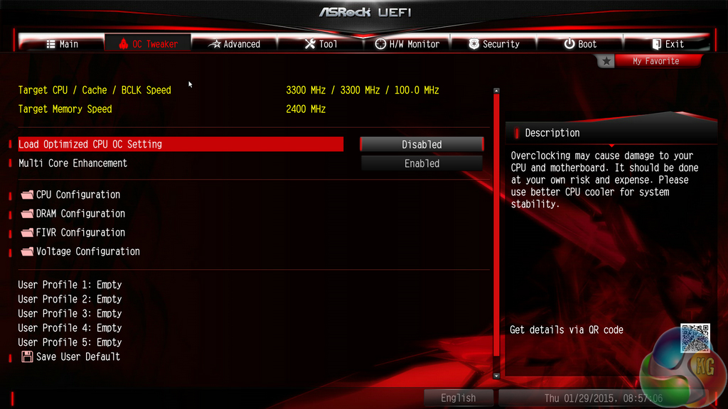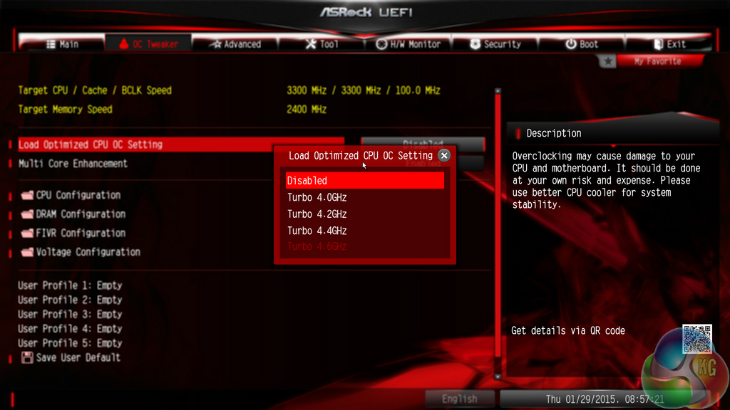 Overclocking profiles designed by ASRock's engineers are pre-tuned in the UEFI.