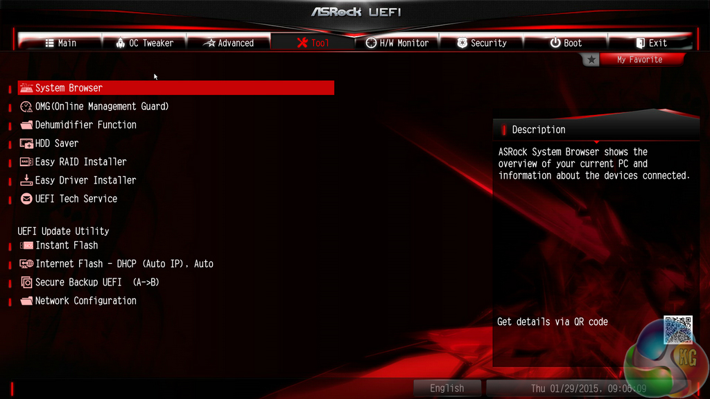 ASRock includes a number of convenient tools in its UEFI. Users can rapidly apply a number of system configurations and drivers can also be downloaded via the interface.