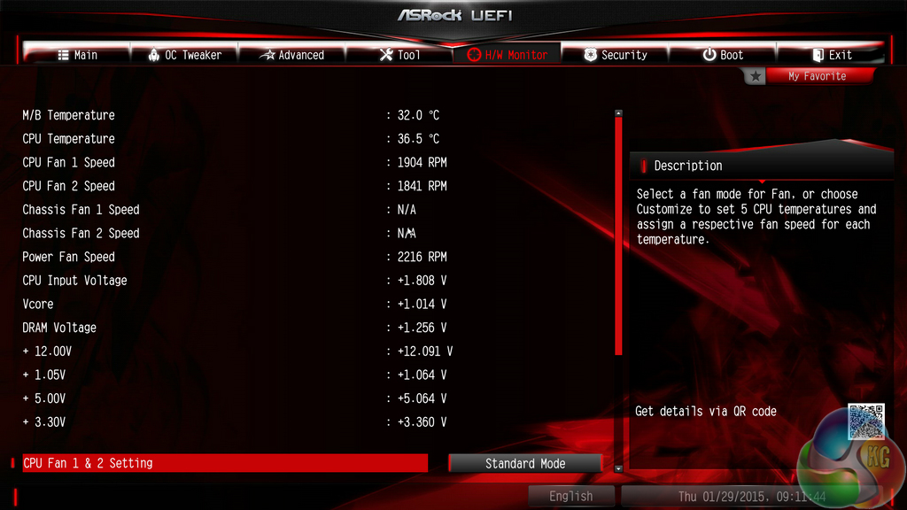 One of the biggest differences between ASRock's other X99 UEFI versions and the one found on its X99M Fatal1ty Killer motherboard is the omission of FAN-Tastic Tuning. The tool's visual fan control function will be missed by users who prefer a graphical method of creating their preferable fan speed profile in the UEFI (the OS version remains in place).
