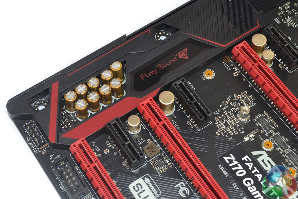 PCB segregation is used to separate the audio signals, however the Realtek ALC 1150 codec is deployed in an unshielded state – many motherboards ship with dedicated EMI shielding for the audio codec.