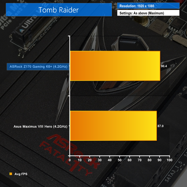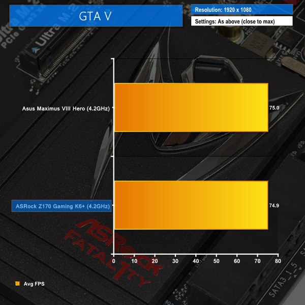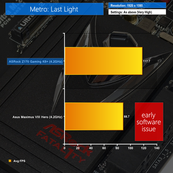 There's very little to tell these two boards apart when it comes to gaming. ASRock's Fatal1ty series motherboard manages to comprehensively outclass the Asus ROG Hero in Metro: Last Light due to the latter's early software issues.