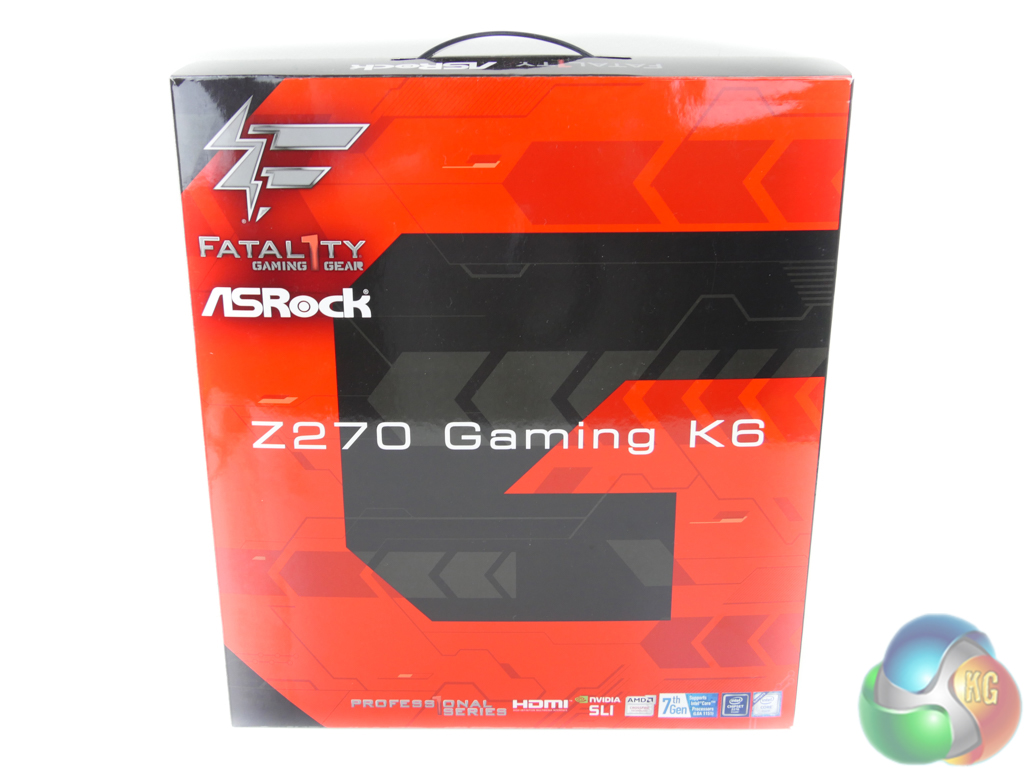 ASRock ships the Z270 Gaming K6 in packaging typical for the company’s Fatal1ty series of motherboards. Red and black colouring steals the show and a detailed infographic of specifications and features is found on the box’s rear side.