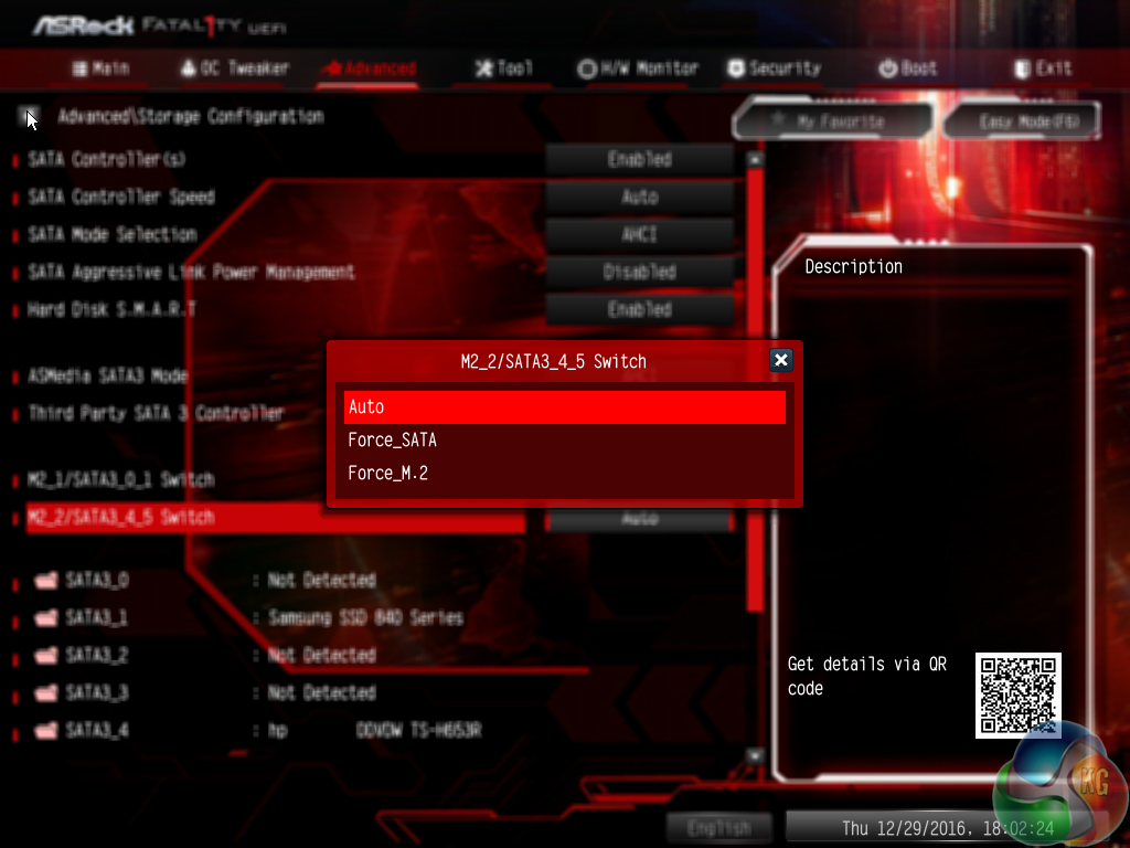 CPU and onboard features can be managed in the Advanced section. The M.2 slots can be set to force SATA mode or PCIe mode.