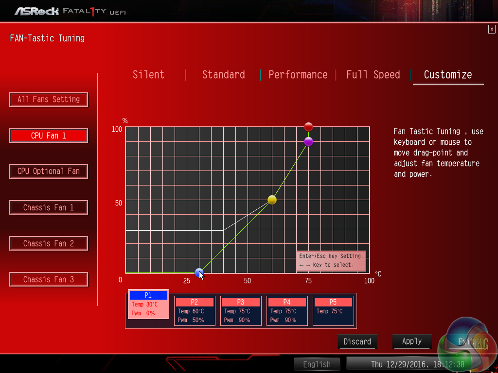 ASRock provides an automated fan tuning tool that scans your system's fans for their lowest rated speed (in order to keep noise levels low). FAN-Tasting Tuning is, despite its silly name, a good tool for adjusting fan speed curves in a manual fashion. The fan speed can be set to 0% at as low as 30°C, which is good to see as some competing vendors do not allow the 0% operation that certain fan models support.