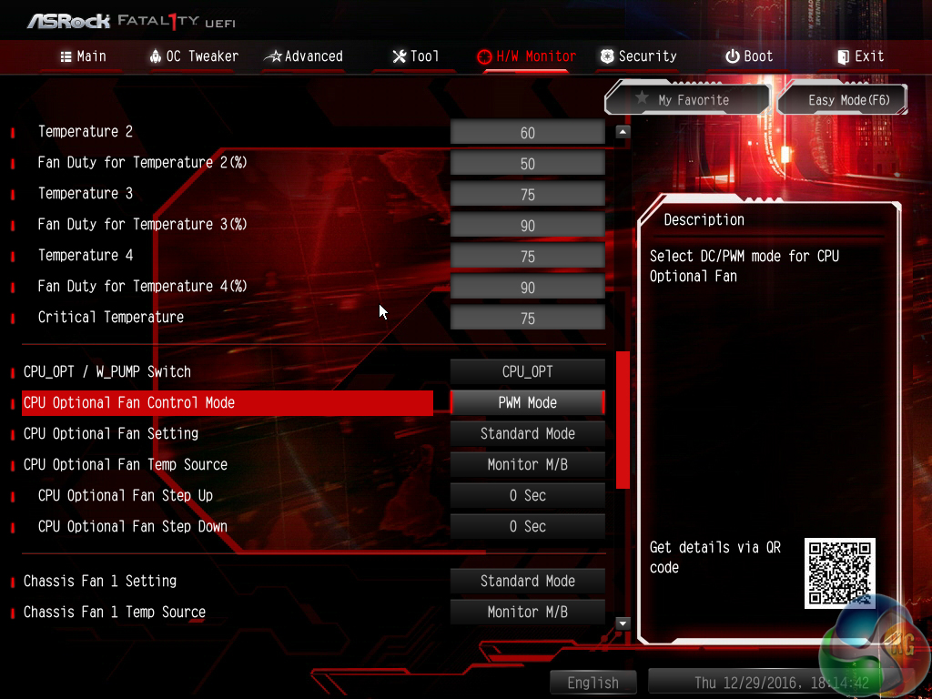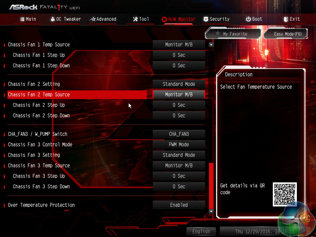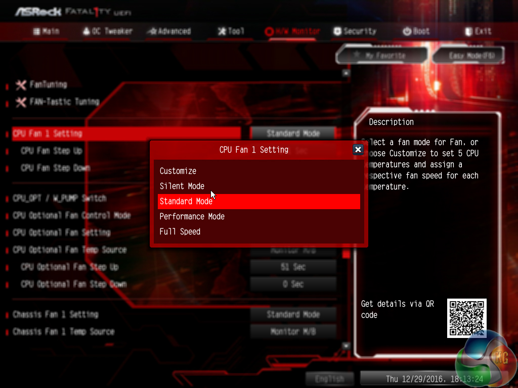 If you prefer to tune your fan speed outside of the graphical environment, ASRock also gives a good set of pre-determined speed profiles. There's also the ability to manually adjust the fan speed curve using numeric temperature and fan speed percentage values. DC and PWM control modes are supported for the two CPU fan headers and the CHA_Fan3/Water Pump header but not for the chassis fan 1 and 2 connections.