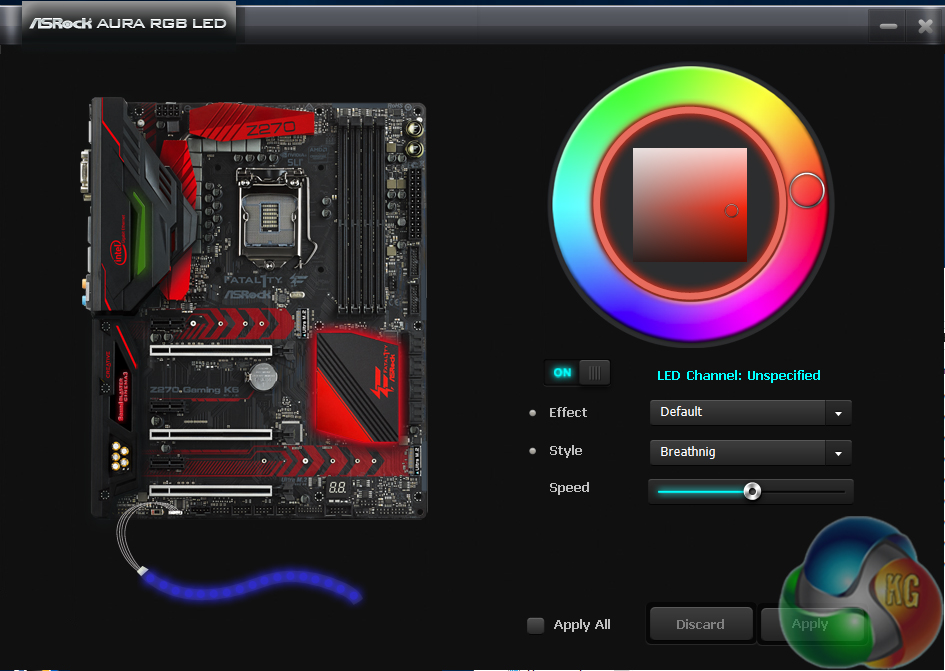There's not much difference between the OS and UEFI AURA RGB LED tools, which speaks volumes for how basic the OS option is. A number of control methods are supported and different colours can be set for the four individual zones. That's about it for RGB LED control.