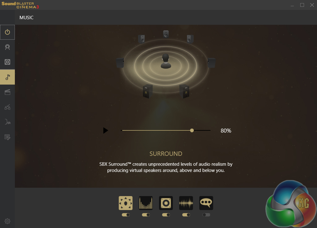 Sound Blaster Cinema 3 software can be used to control the audio system and tweak profiles to your individual preference.