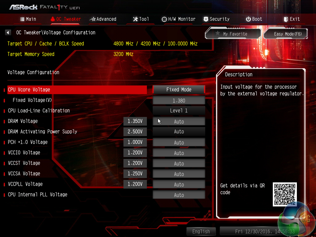 We took our 7700K to its Prime-stable maximum frequency of 4.8GHz. This used a 1.35V BIOS-set VCore and the Level 1 LLC mode which saw the CPU VCore drop by only 6mV under heavy load. This level of voltage accuracy is superb.