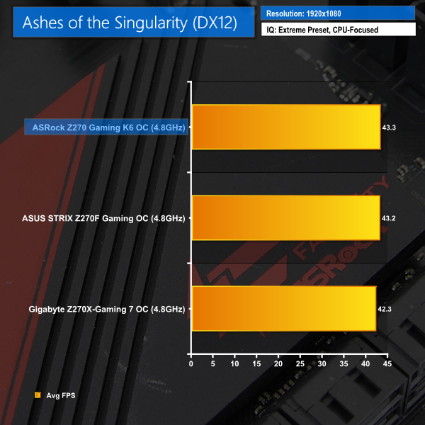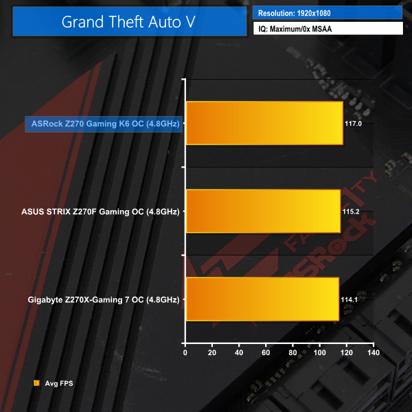 After being overclocked to 4.8GHz, ASRock's Fatal1ty Z270 Gaming K6 maintains its top spot in CPU-heavy benchmarks and manages to gain the first position in gaming tests.