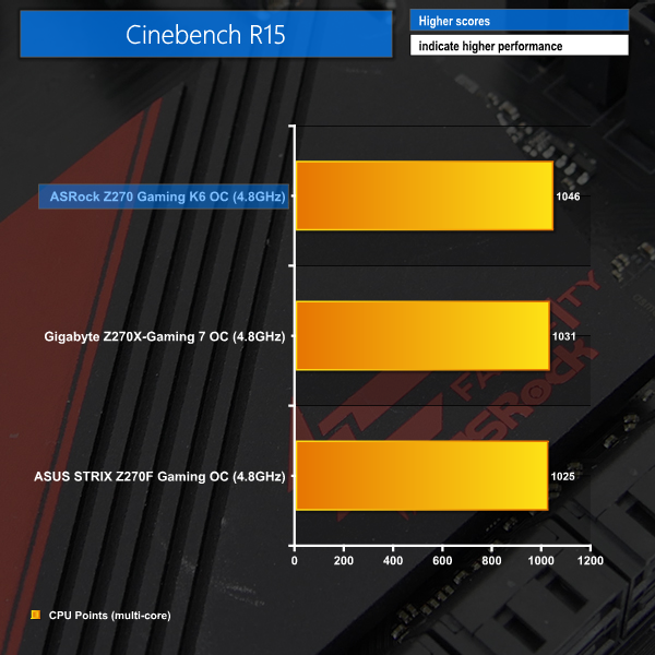 As a performance comparison, we have included the results from two other Z270 motherboards. The maximum overclocked configuration achieved with each board was a 4800MHz (48 x 100MHz) processor frequency whilst using 3200MHz CL14 memory.