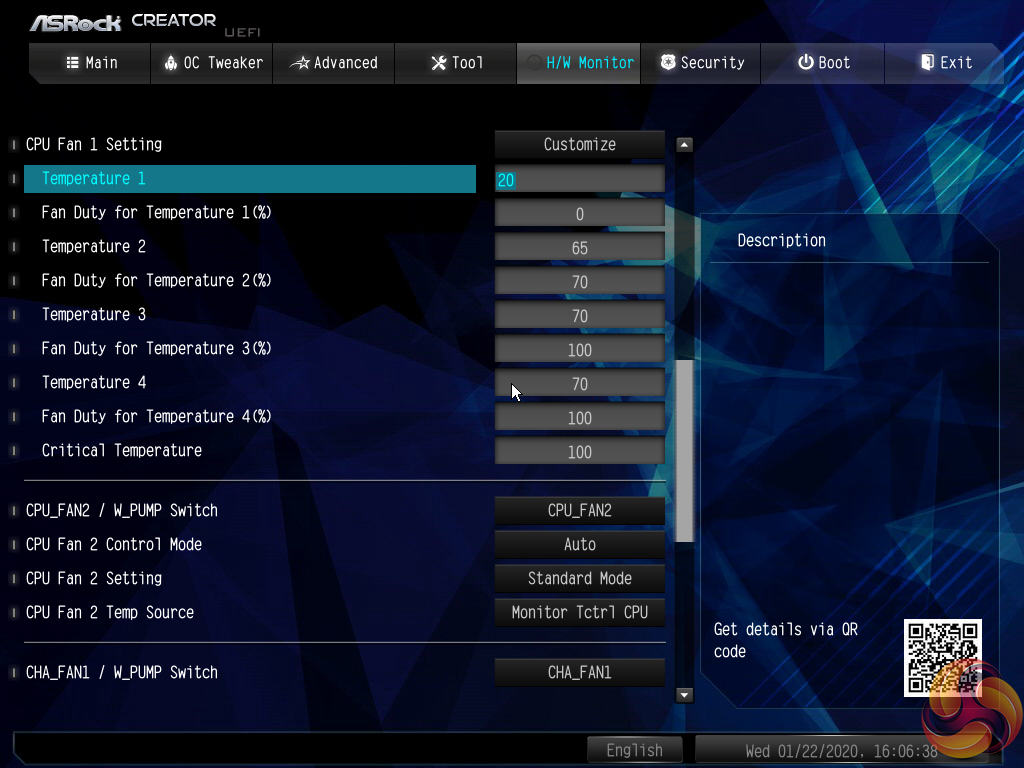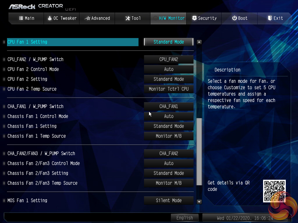Unfortunately, the FAN-Tastic Tuning section did not work in our testing with the TRX40 Creator. We expect its abilities to be the same as what we have seen from other ASRock motherboards whereby fan speeds can be configured visually using a multi-point curve.