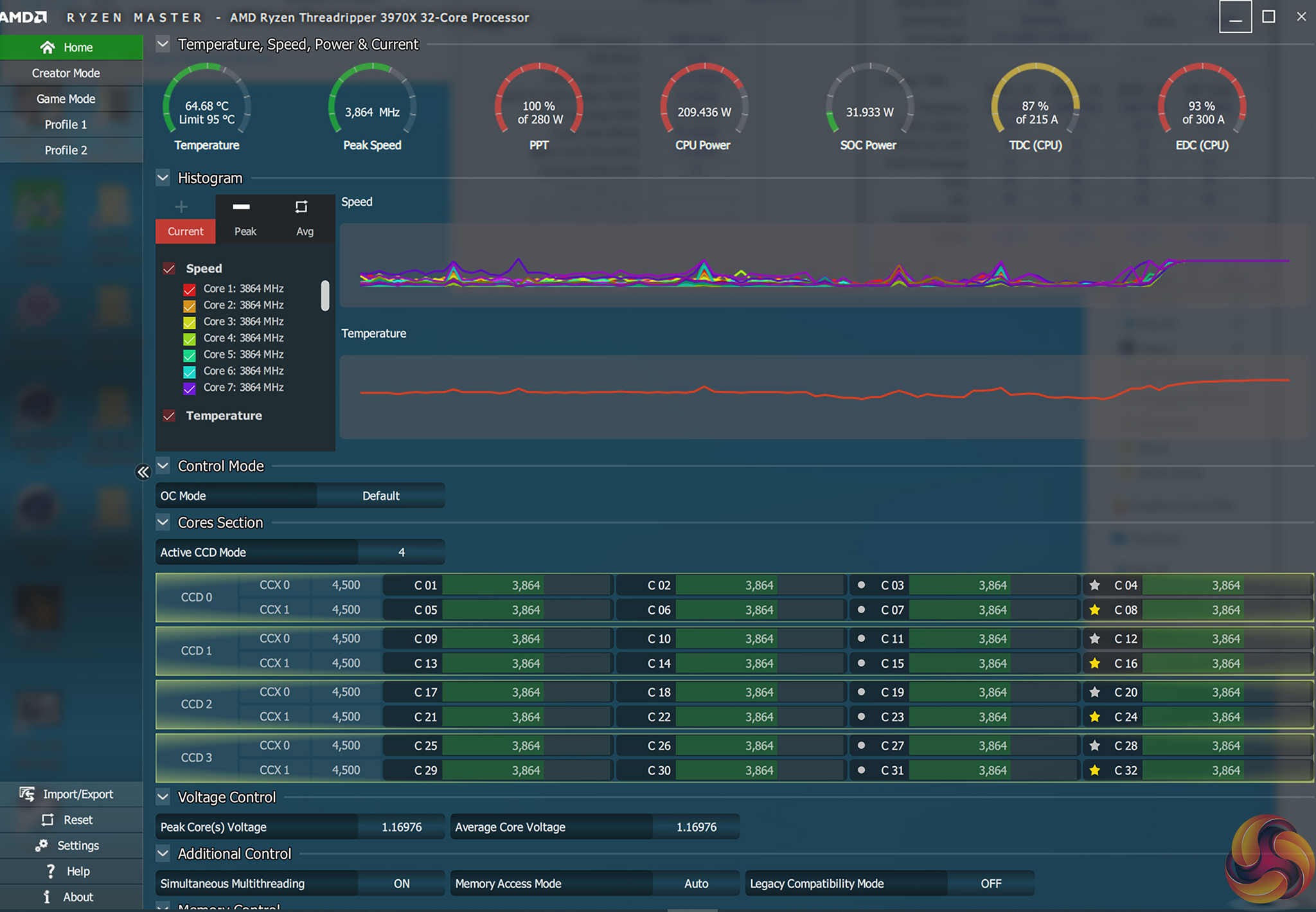 - Memory: 32GB (4x8GB) G.SKILL 3200MHz CL14 DDR4 @ 1.35V.
