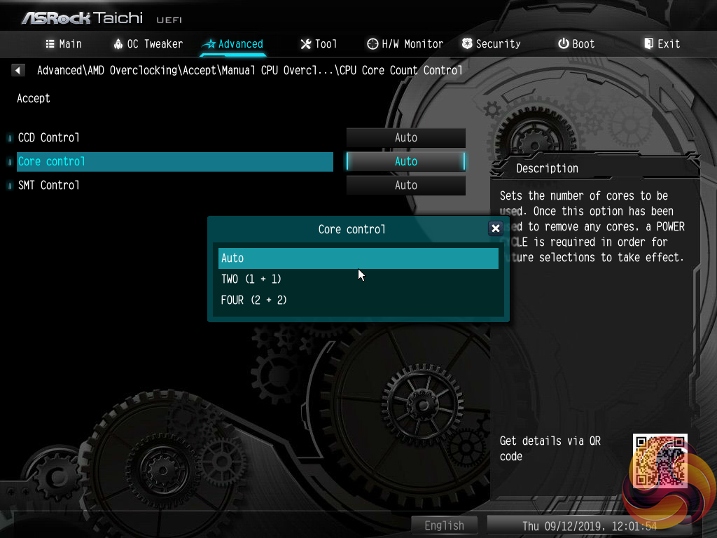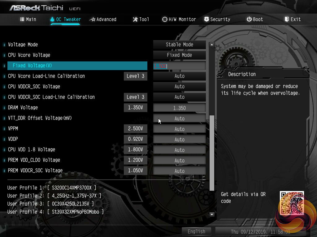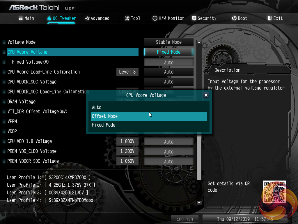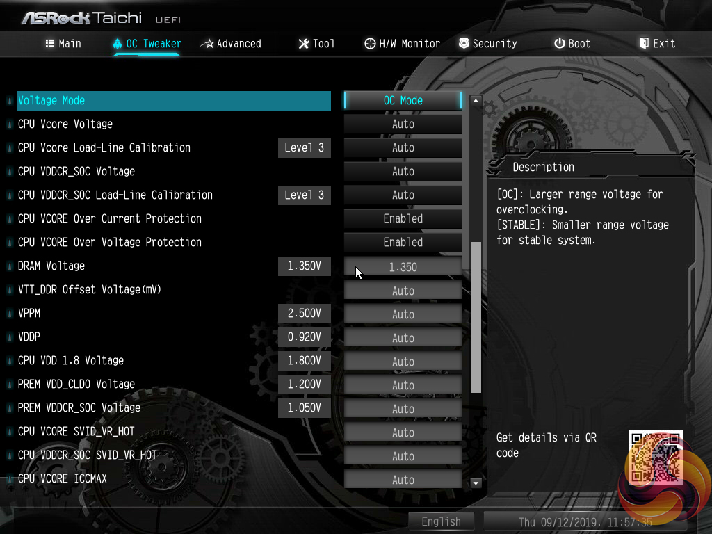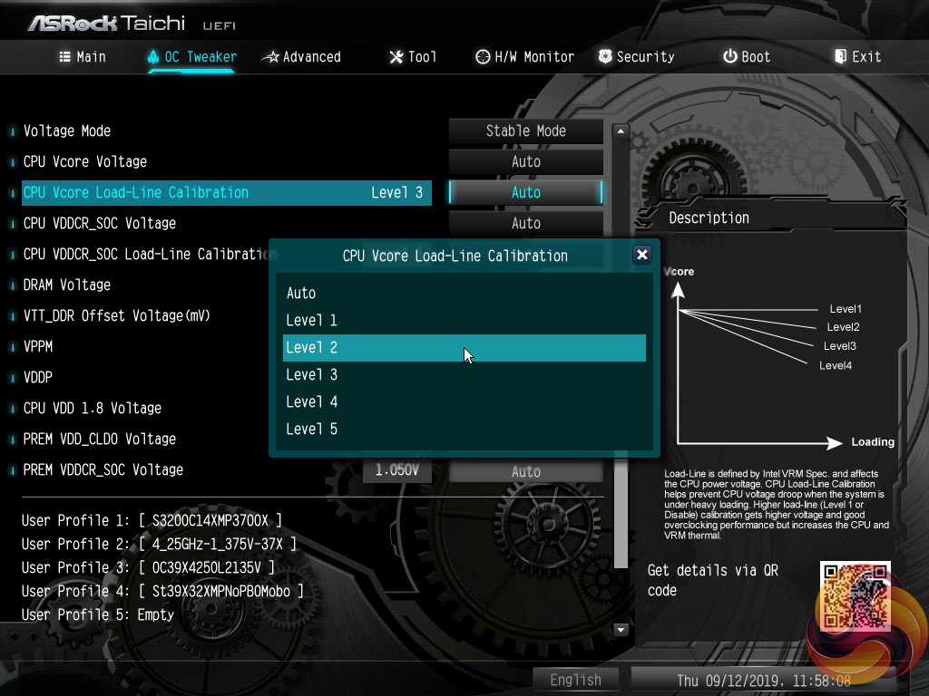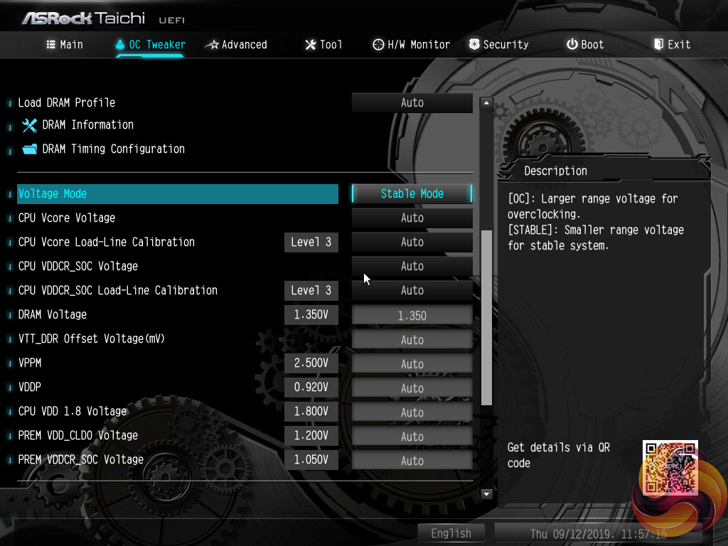 The OC Tweaker section is good in terms of the options and granularity the user has to tune their hardware. The voltage number input seems to be uses a switch to red text when voltage levels that are high and risky have been entered. ASRock’s system for allowing a user to manage loadline calibration is very good as the options are clearly displayed using a graph.