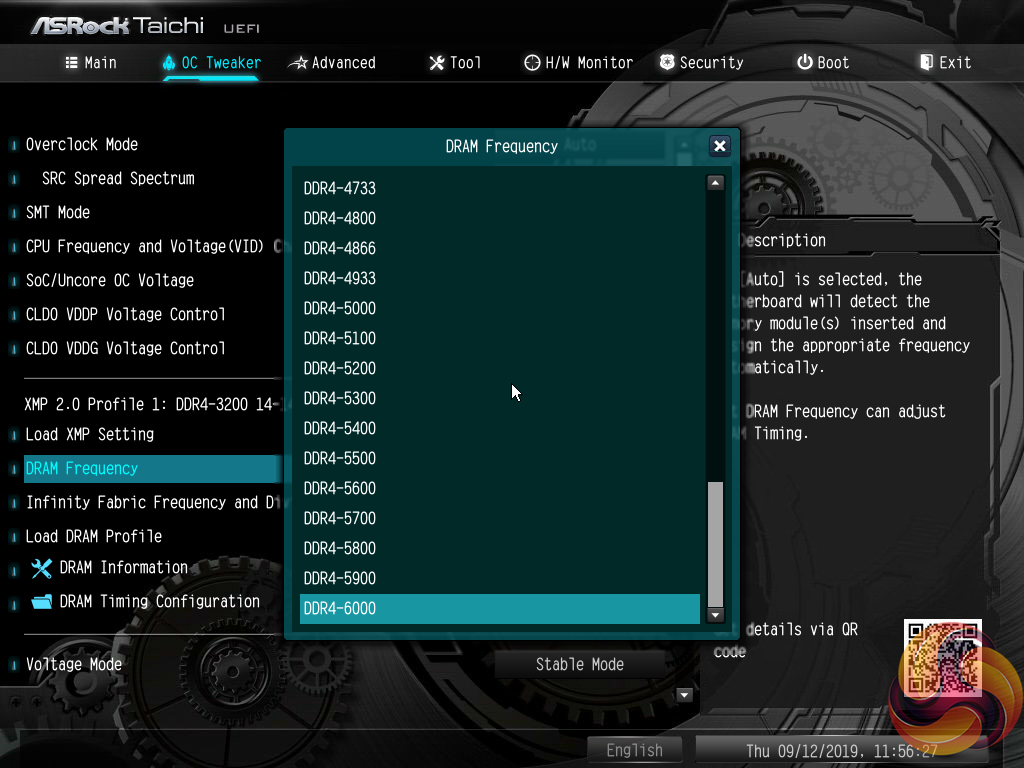 Plenty of memory-related settings are available, including dividers for extremely high frequencies and overclocked presets for specific kits.