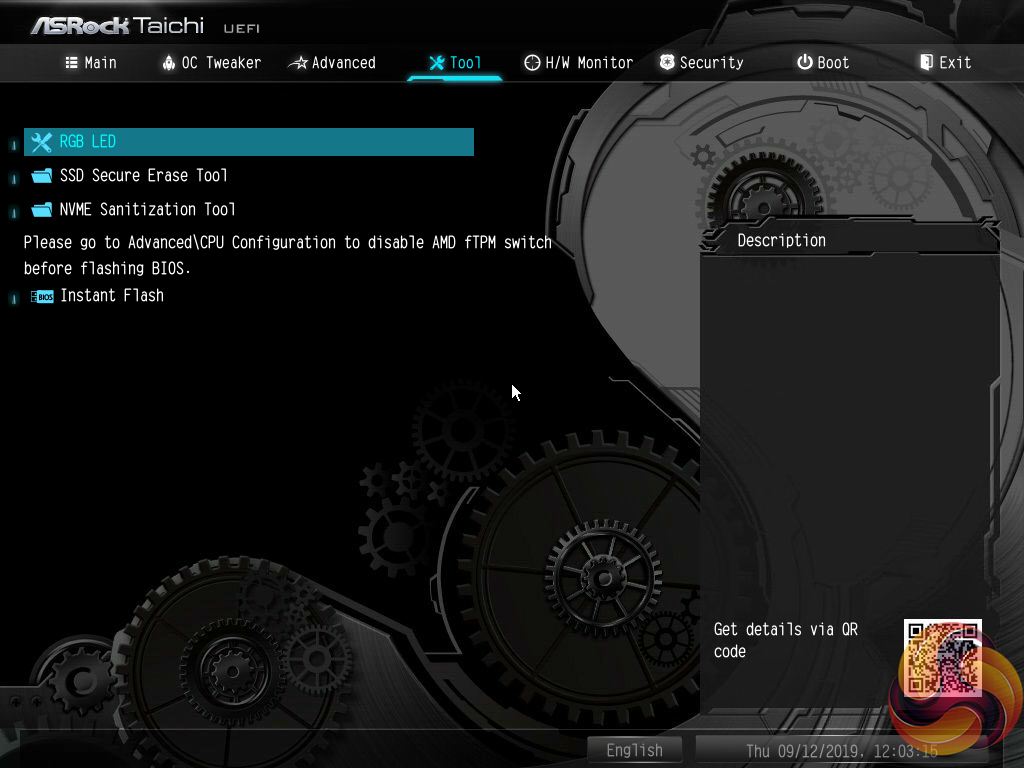 The Tools section holds a number of handy utilities such as Instant Flash for updating the UEFI (including via the internet), a driver installer, and an option for managing the RGB LEDs.
