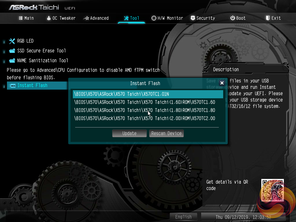 Instant Flash automatically scans a connected USB flash drive, rather than prompting a user to navigate through the folders to a BIOS file. There’s nothing wrong with this approach as the motherboard is able to find the BIOS update file itself. However, if your USB drive contains a large amount of data, the time taken to find the relevant BIOS file will be long.