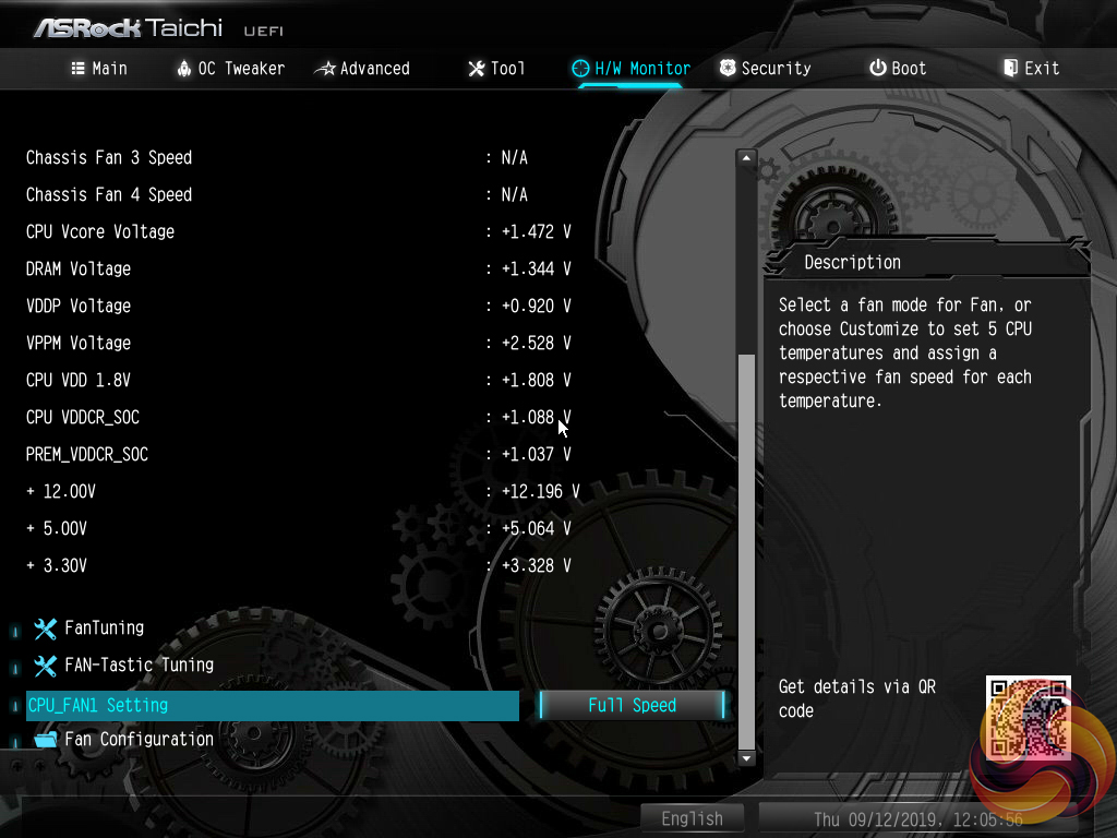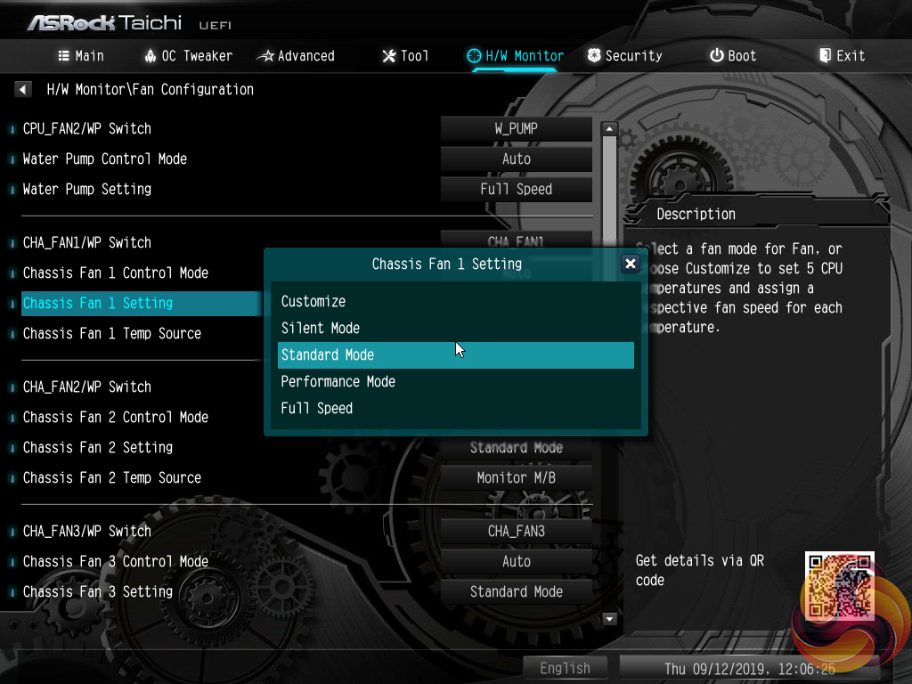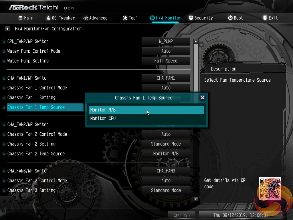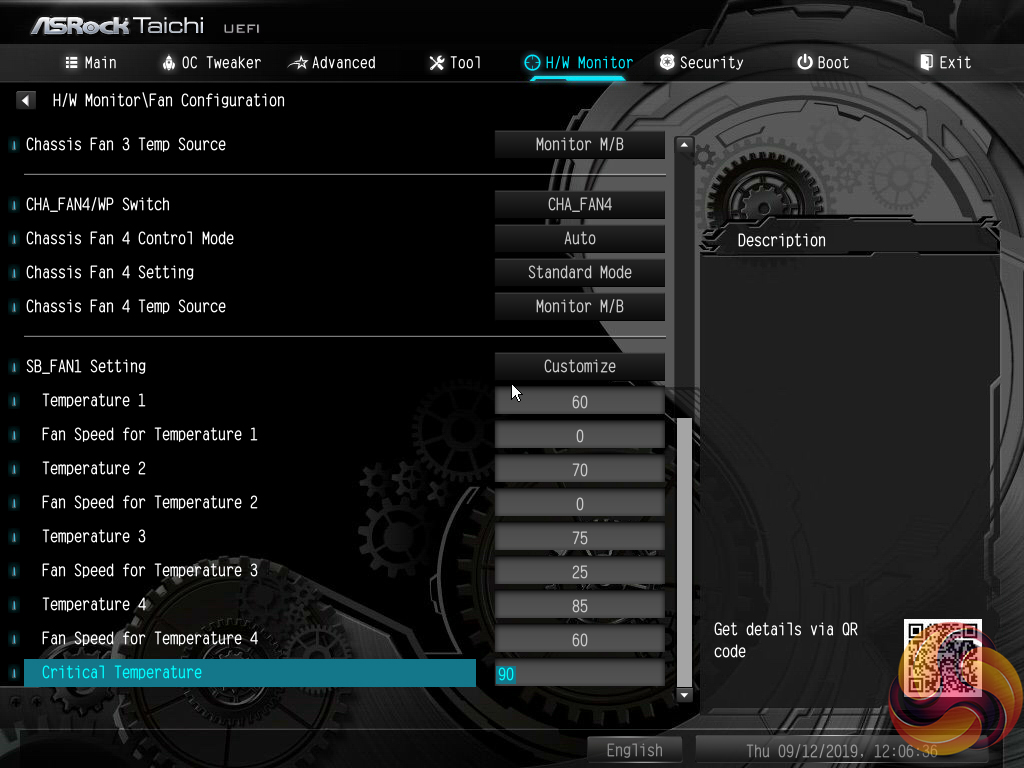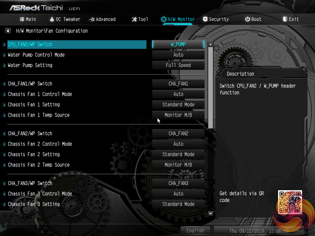H/W Monitor contains fan controls and a number of temperature and voltage readouts for monitoring. The fan options are plentiful with a variety of fan speed profiles but only CPU and motherboard temperature reading options. A user can set a well-tuned fan speed curve simply by opting for numerical inputs.