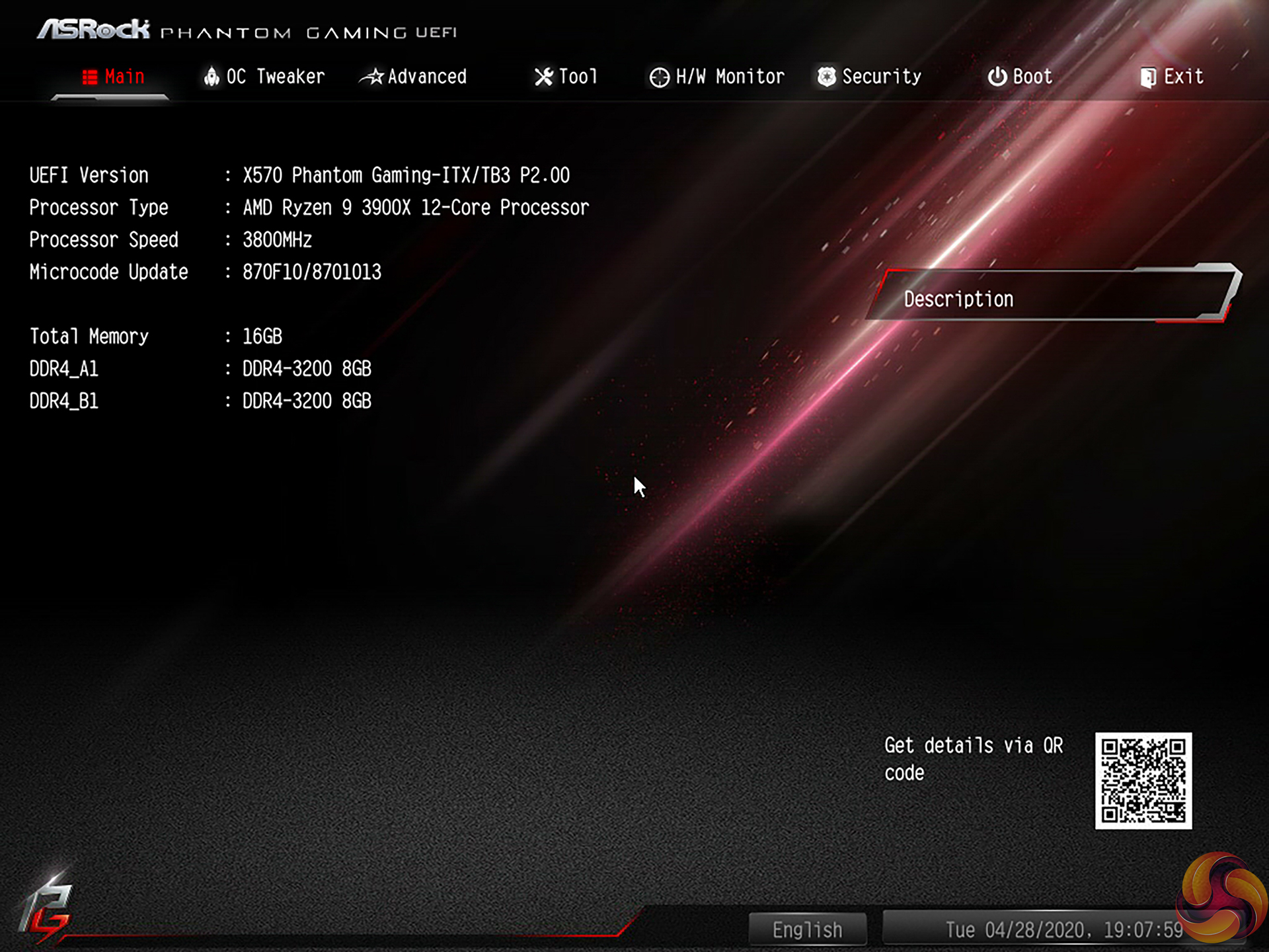 ASRock's X570 UEFI is largely consistent across the product stack (except for colour schemes). As such, we have re-used the analysis and screenshots from our X570 Taichi motherboard review.