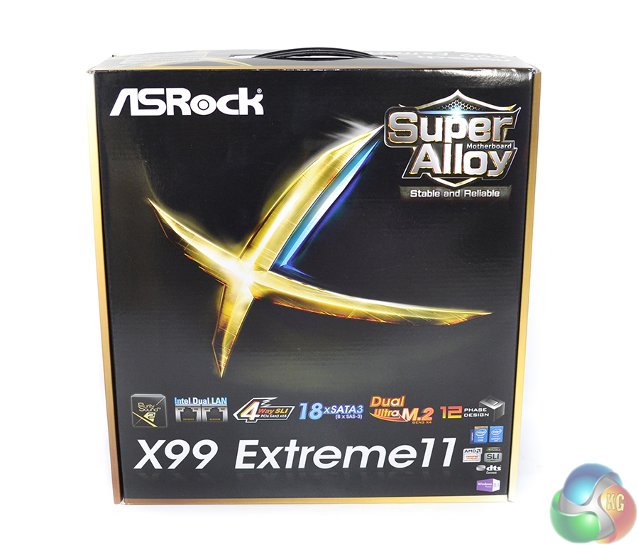 ASRock ships the X99 Extreme11 in the company's typical style of packaging. A few of the key features are outlined on the front of the box, while detailed specifications are highlighted on the rear.