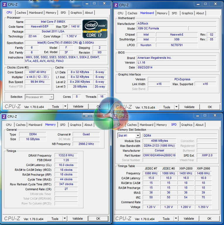 Using the L1.16 beta BIOS that we started testing with, our G.Skill Ripjaws4 and Corsair Vengeance LPX memory kits would not boot at their 3GHz XMP settings. The Corsair memory kit also faltered at its 2800MHz XMP profile, which is disappointing. It seems that the X99 OC Formula is badly tuned for the memory kits' XMP setting.