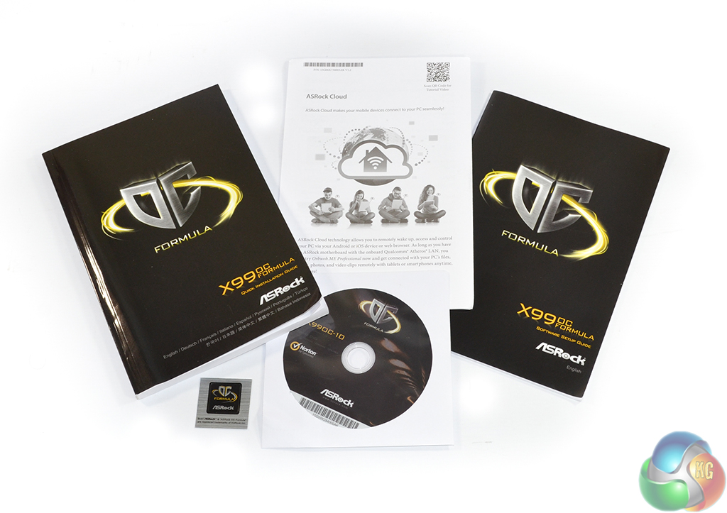 Supplied documentation consists of the usual affair of manuals and guides. ASRock also supplies a drivers CD and OC Formula-branded case badge.