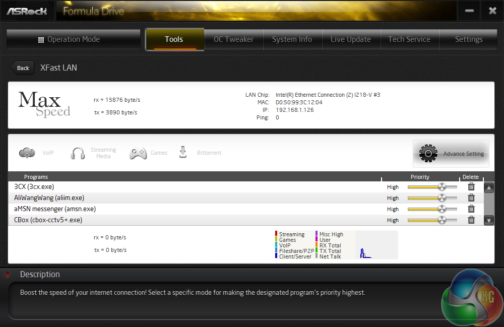 XFast RAM can be used to create RAM drive, while XFast LAN gives users the opportunity to control their network bandwidth allocation (much like Killer's Network Manager software).