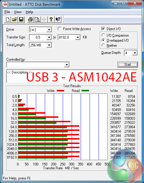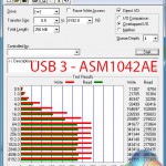 We tested USB 3.0 performance using the Kingston HyperX 3K SSD connected to a SATA 6Gb/s to USB 3.0 adapter powered by an ASMedia ASM1053 controller.