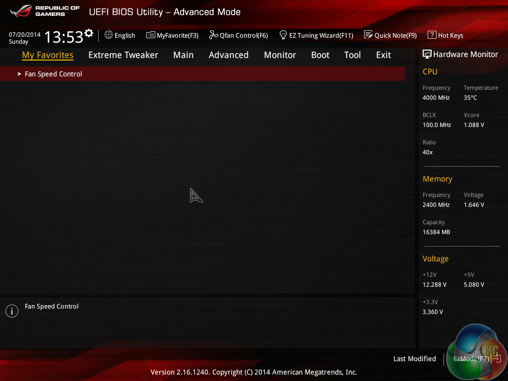 Asus gives the Z97 ROG UEFI its usual level of flexibility regarding fan speed tweaking. The Q-Fan Tuning utility gives users a graphical display from which they can adjust speed against temperature settings.