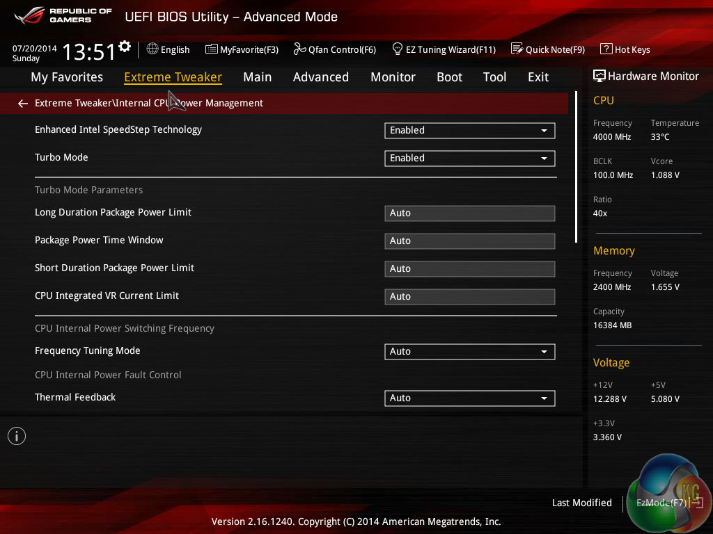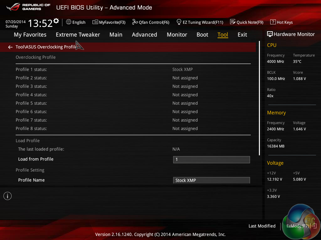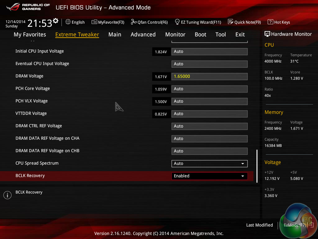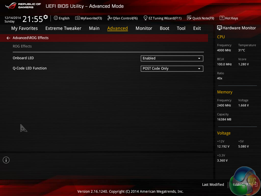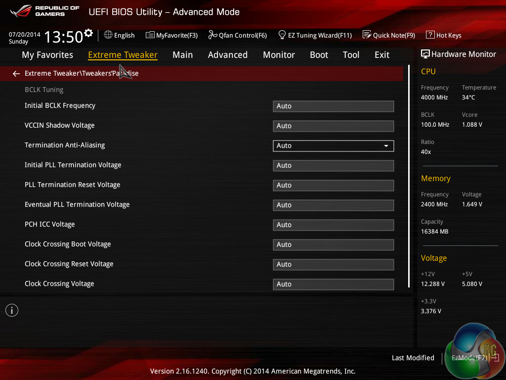 The ROG UEFI used on Asus' Maximus VII motherboards is almost identical across the board (hence our previous screenshots are reused). There are some subtle differences in the UEFI specific to each board, based on the part's feature set.
