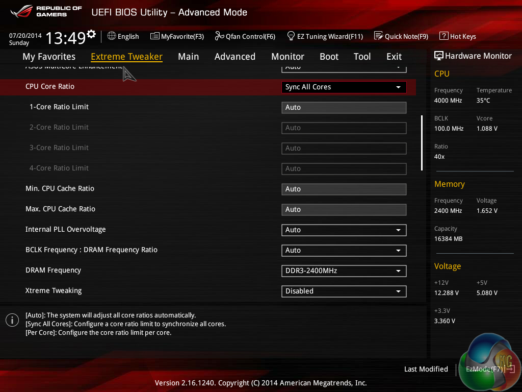 Extreme Tweaker follows the standard layout that we have come to expect from recent Asus motherboards, and that’s a good thing. Easy access is provided to ratio, frequency, and voltage settings, allowing users to adjust their system parameters with minimal effort.