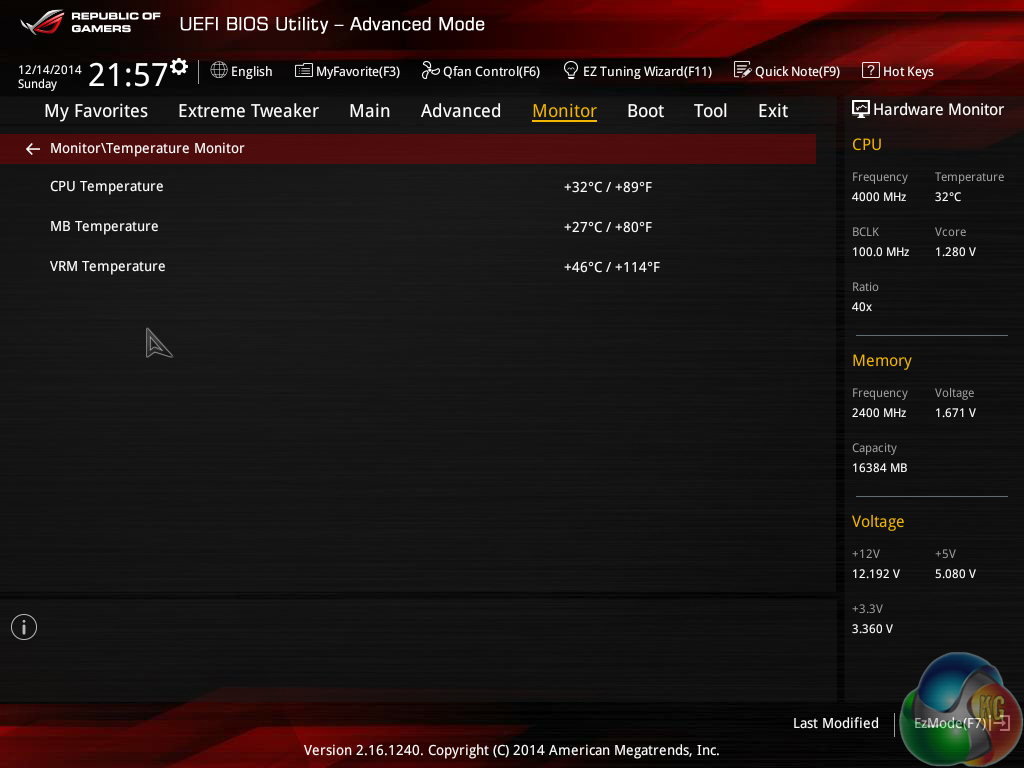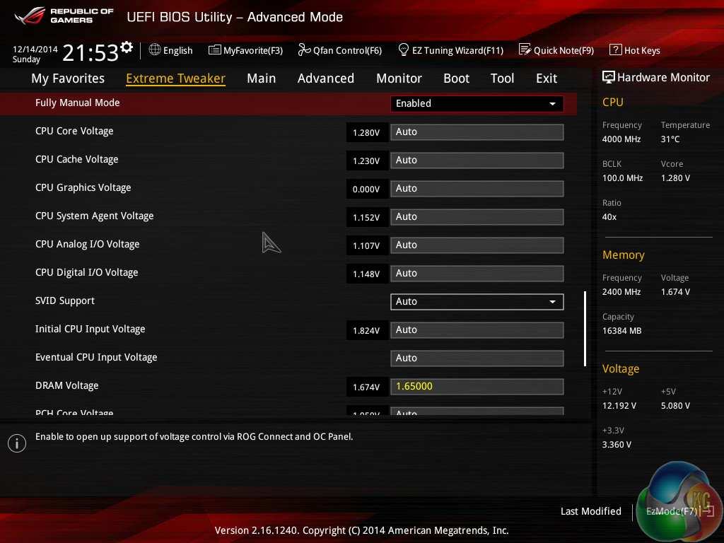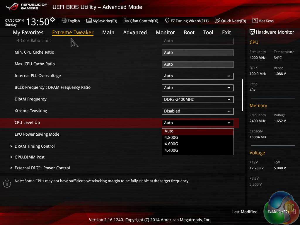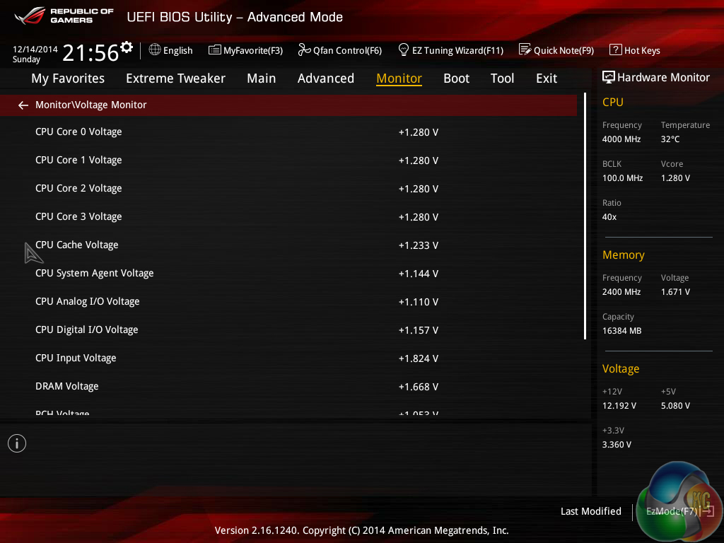We have no complaints whatsoever regarding the Z97 iterations of the ROG boards' interface. Not even the comparatively low 1024×768 resolution can be registered as a negative because Asus manages to display a relevant amount of information on each frame without making the screen full of confusion.