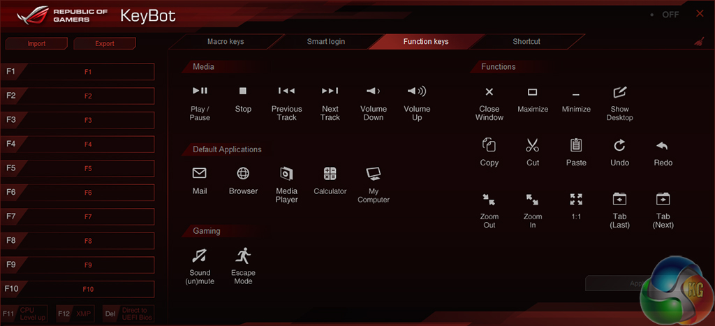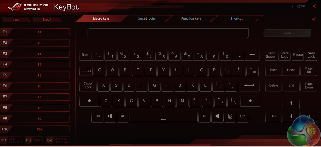 KeyBot can be used to assign macros and shortcuts to a gaming keyboard. As Asus jokingly outlined at the company's press event, a one-touch solution for blanking the screen and muting the sound can be useful to gamers who are disturbed when undergoing their “me time”.