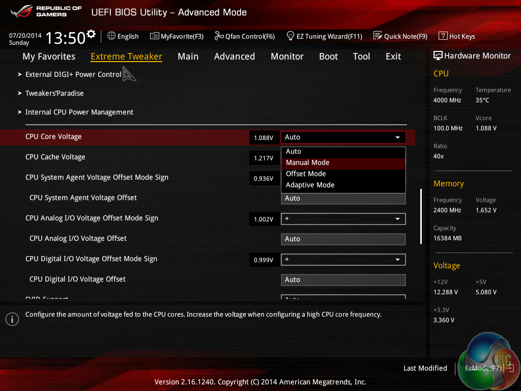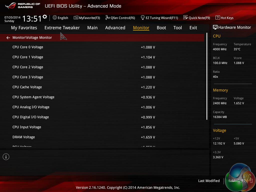 A large number of voltage settings can be adjusted to a user's preference. Asus displays voltage levels in a clear manner, which is particularly convenient for users who are still perfecting their overclocking skills.