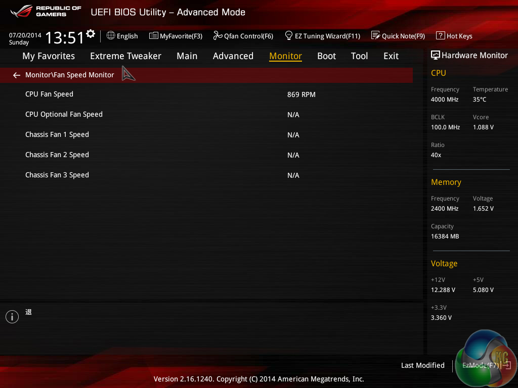 Asus gives the Z97 ROG UEFI its usual level of flexibility regarding fan speed tweaking. The Q-Fan Tuning utility gives users a graphical display from which they can adjust speed against temperature settings.