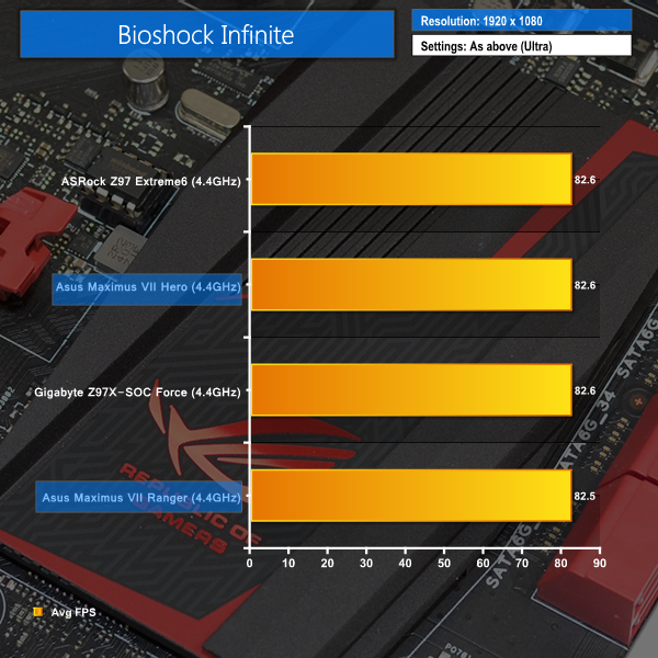 Both the Hero and Ranger offer stellar gaming performance. Asus' Ranger is able to muster up a few extra tenths of a frame in Metro: Last Light, although it then drops by a tenth in Bioshock Infinite.
