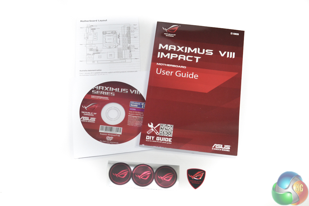 Documentation comes in the form of a motherboard layout leaflet and user guide. Asus also includes a drivers CD and two different types of case stickers.