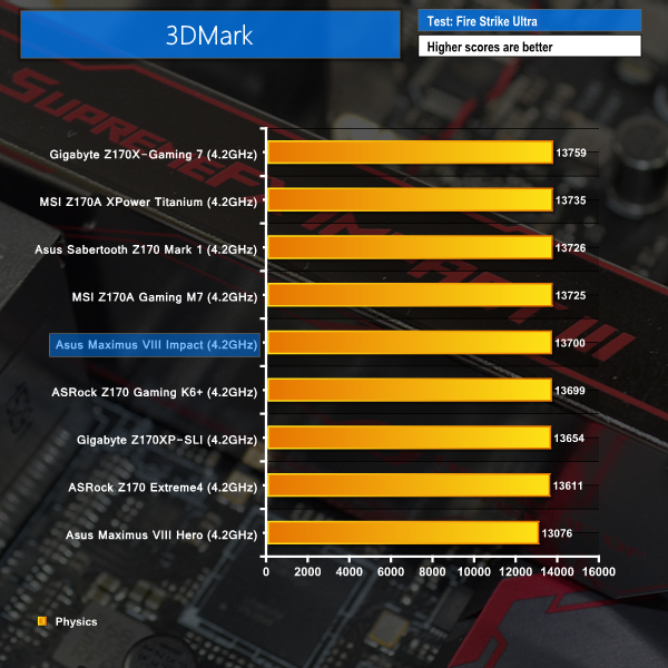 The 3DMark Physics score is respectable and very good numbers are put up in GTA V and Shadow of Mordor. If you want a mini-ITX motherboard that doesn't limit your gaming performance, Asus' Maximus VIII Impact proves itself as a competitive solution.